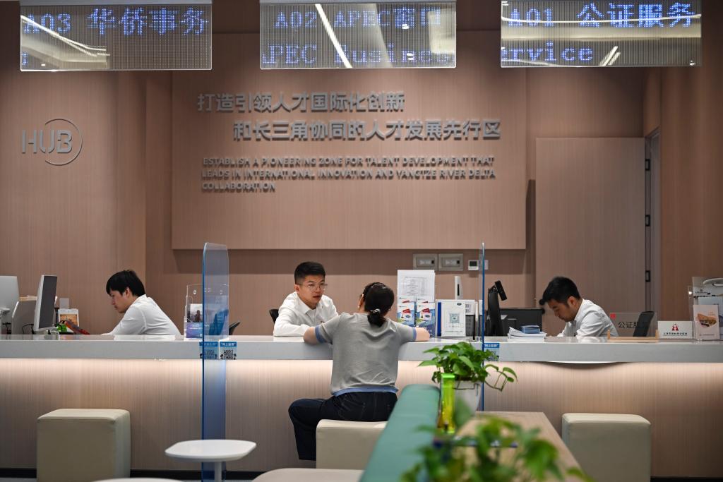 2025年9月10日,市民在上海虹桥国际人才服务中心办事大厅办理业务。新华社记者 陈浩明 摄